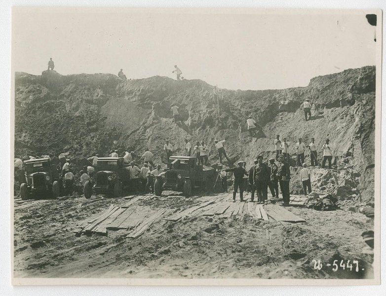 «Выемка производилась в период почти непрекращающихся дождей. Грунт насыщенный водой, не держался на лопате, вытекая из грабарок. Водосборные кюветы, идущие вдоль котлована и колодцы у насосов все время заплывали и требовали непрерывной очистки…».